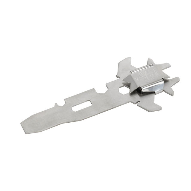 Multi-utensile per Optimus Polaris, Nova e Nova+. Caratteristiche: chiave da 11 mm per dado base bruciatore, chiave da 10 mm per sostituzione tubo carburante, gancio valvola pompa, chiave da 7 mm per cambio pelle pompa, tacca da 8 mm per dado mandrino, chiave da 6 mm, cacciavite per regolazione ugello, magneti per la pulizia, chiave da 12 mm, tacca per la regolazione dei piedini di appoggio sulla piastra bruciatore.